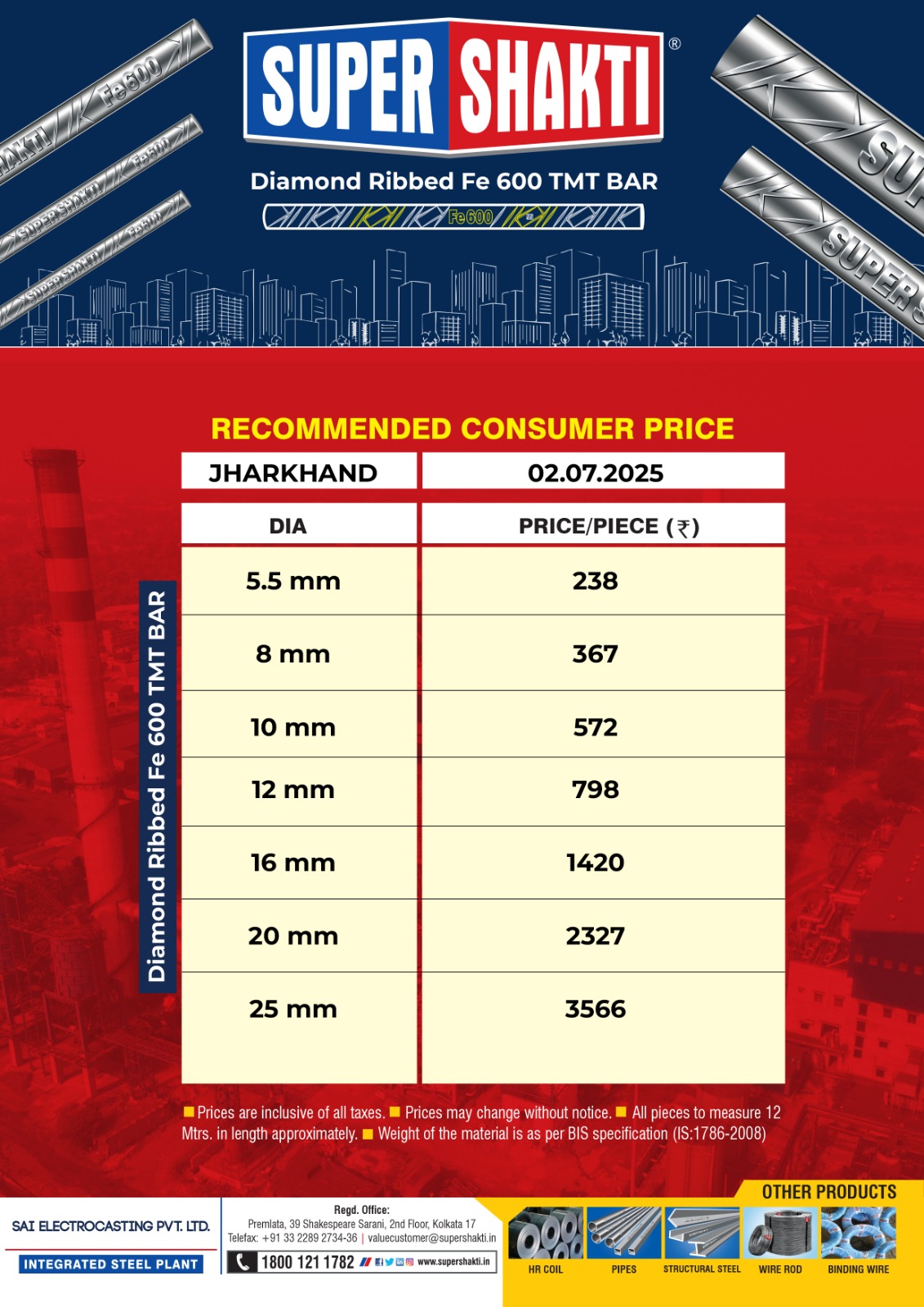 We have been doing business with Super Shakti TMT for the 3 years. The best part of the company is that they give full focus on the quality of the product. We are happy to say that we got all positive feedback from our customers regarding the quality of the product and till date, there has not been a single complaint regarding the quality of products.